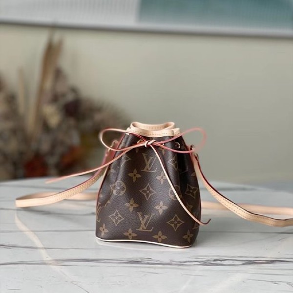 클래식한 모노그램 캔버스로 제작된 나노노에 클러치백으로 여성스러움의 극치를 보여주며, 일상용품 휴대에 이상적입니다. 노에 핸드백의 미니 버전으로 스마트폰과 신용카드, 열쇠를 쉽게 수납할 수 있는 정교한 스티치가 돋보이는 핸드백입니다